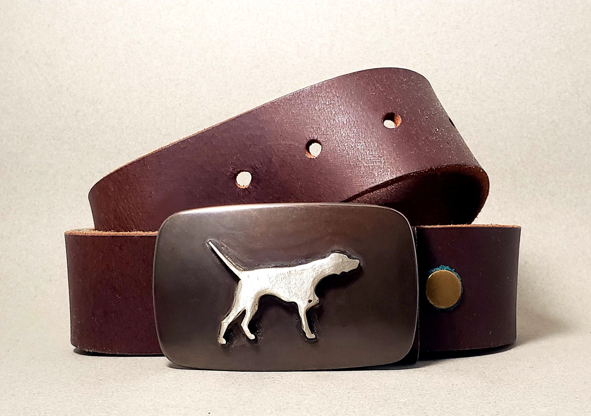 This buckle is partnered with a full grain buffalo leather belt. Buffalo is thicker, softer, more flexible, stronger, and resists abrasion better than cow leather. Read more about your 1.5 inch wide buffalo leather belt here.